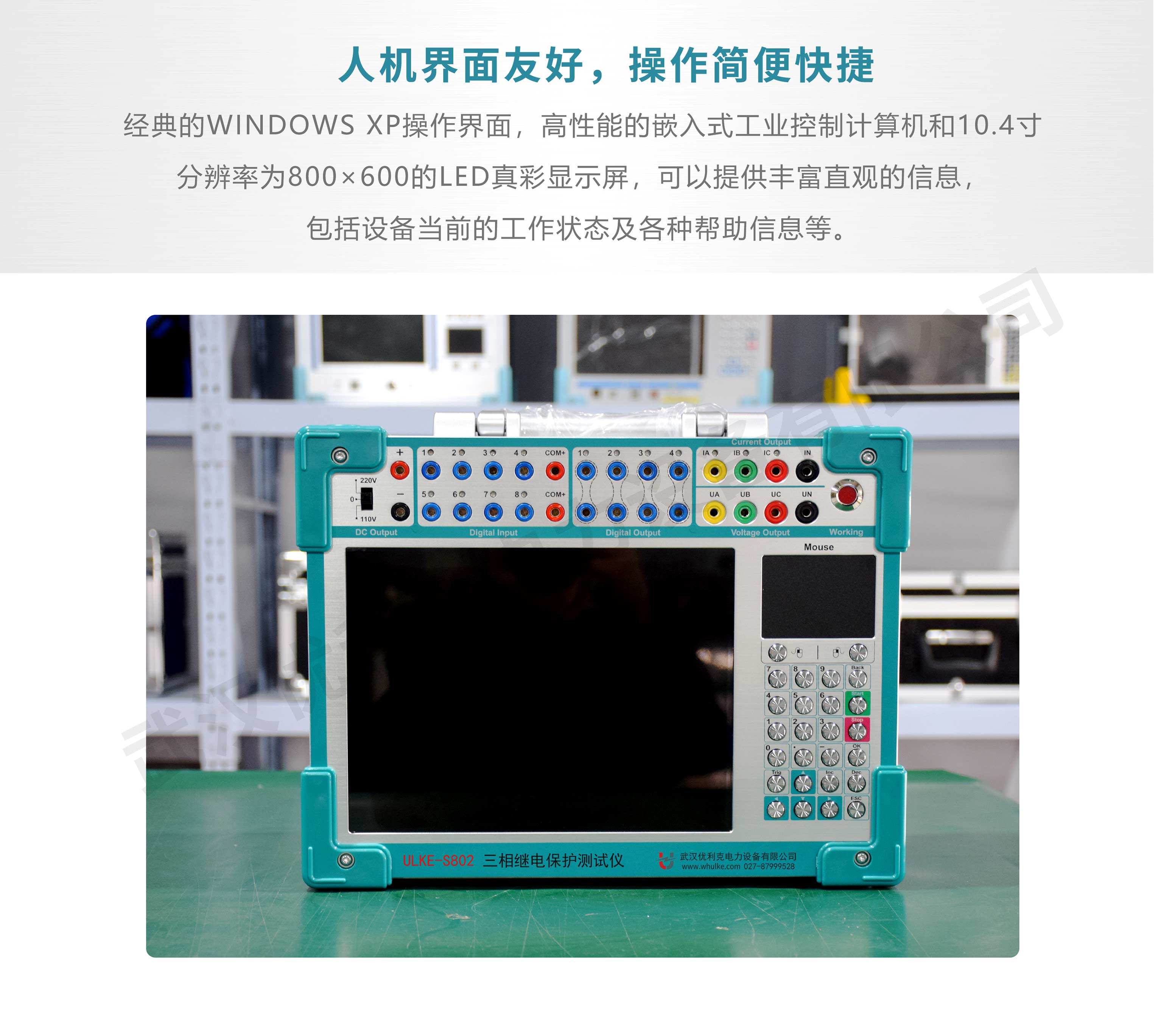 3.經典的Windows XP操作界面,人機界面友好,操作簡便快捷;高性能的嵌入式工業控制計算機和8.4寸分辨率為800×600的TFT真彩顯示屏,可以提供豐富直觀的信息,包括設備當前的工作狀態及各種幫助信息等。