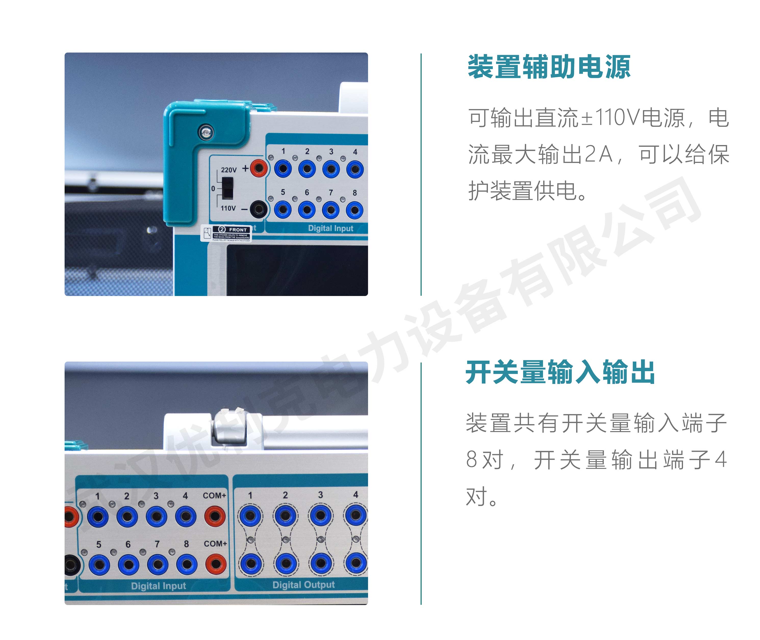 | 開關量輸出端子 | 4 對,空接點,遮斷容量:110V/2A,220V/1A |