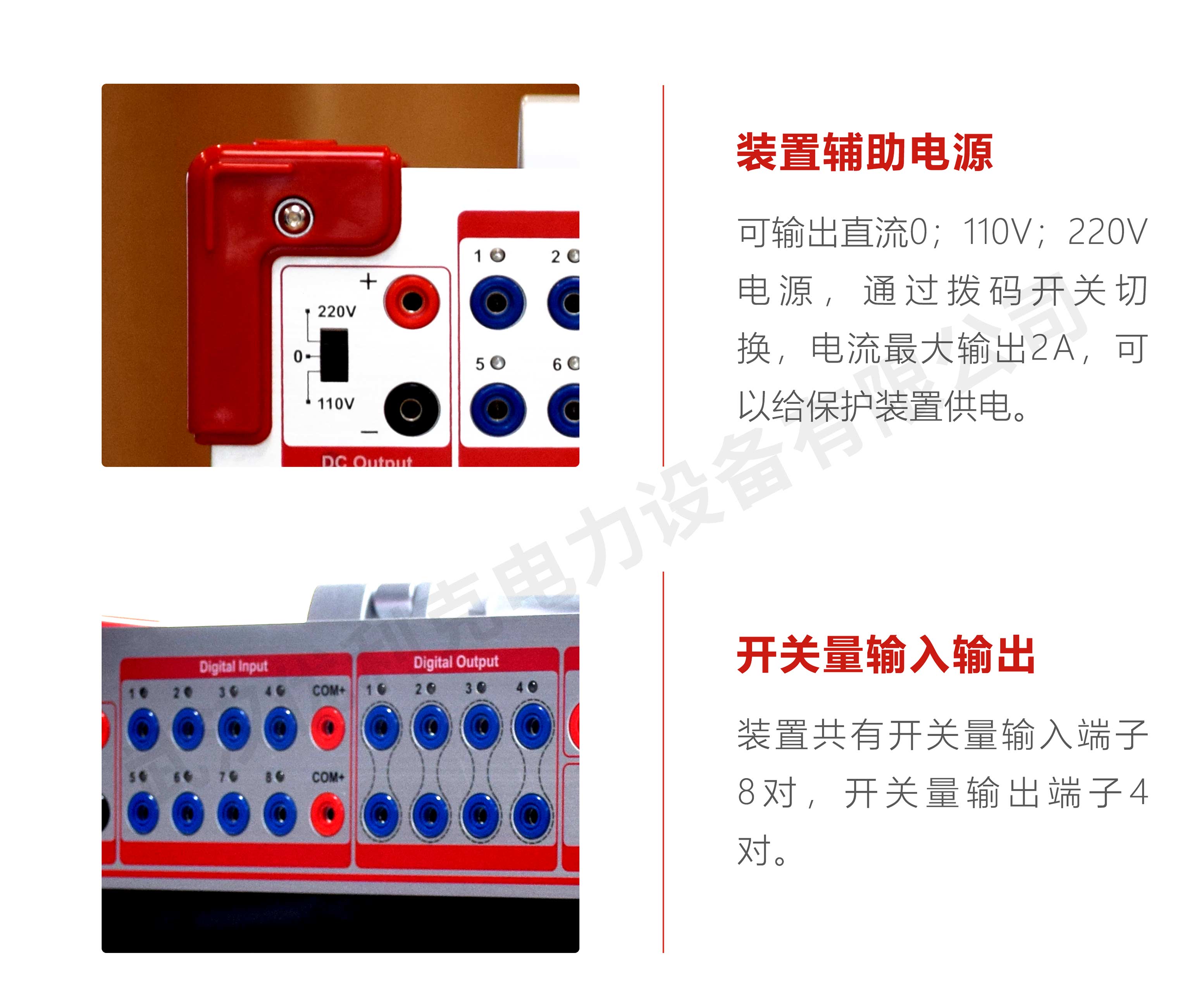 本設備配有獨立專用直流輔助電壓源輸出,輸出電壓分別為110V(1A),220V(0.6A)。以提供給需要直流工作電源的繼電器或保護裝置使用。