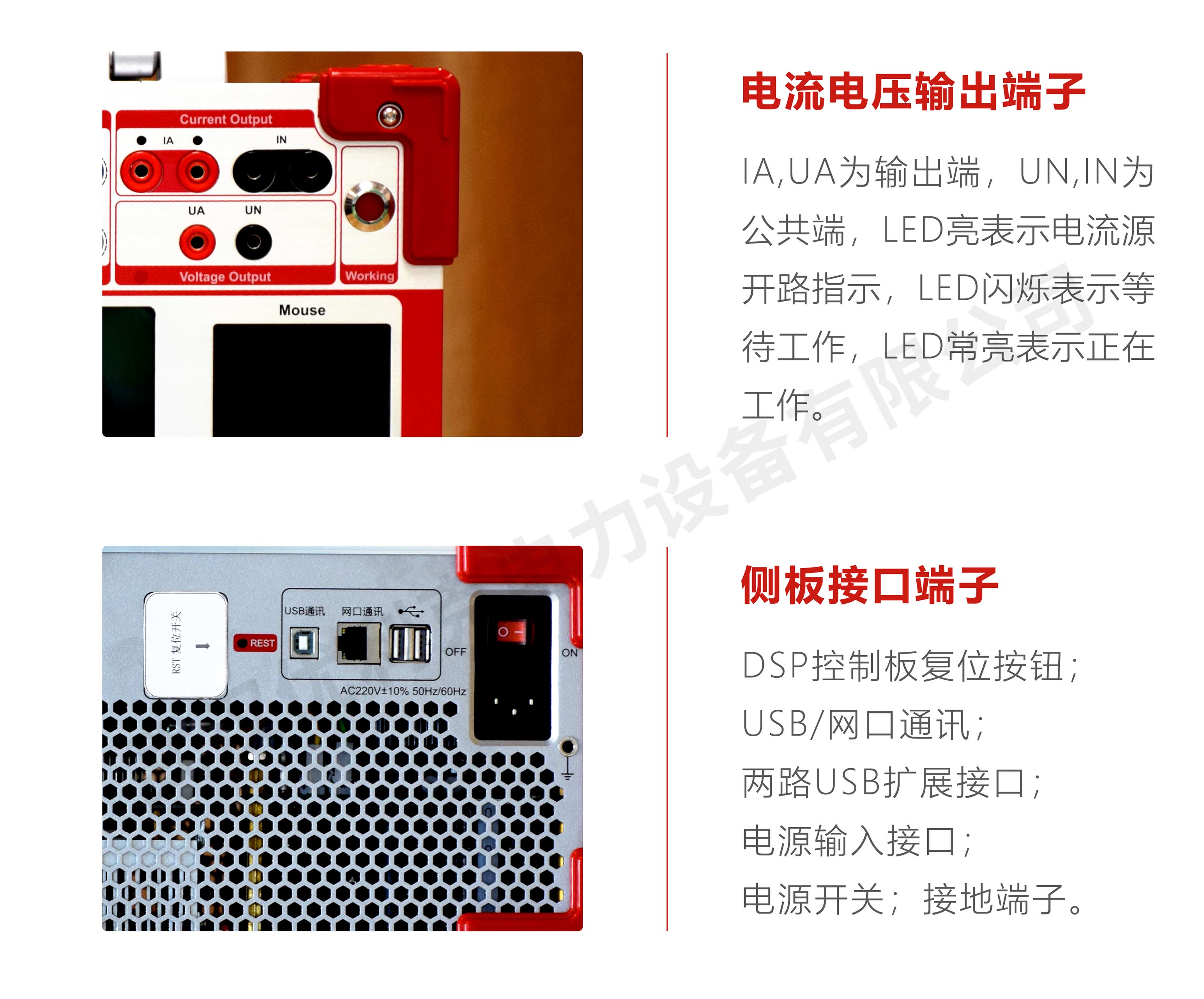 本儀器具有單相電壓,單相電流輸出,既可對傳統的各種繼電器及保護裝置進行試驗,也可對現代各種微機保護進行各種試驗。主控板采用DSP+FPGA結構,16位DAC輸出,對基波可產生每周2000點的高密度正弦波,大大改善了波形的質量,提高了測試儀的精度。功放采用高保真線性功放,既保證了小電流的精度,又保證了大電流的穩定。USB接口直接和PC機通訊,無須任何轉接線,方便使用。