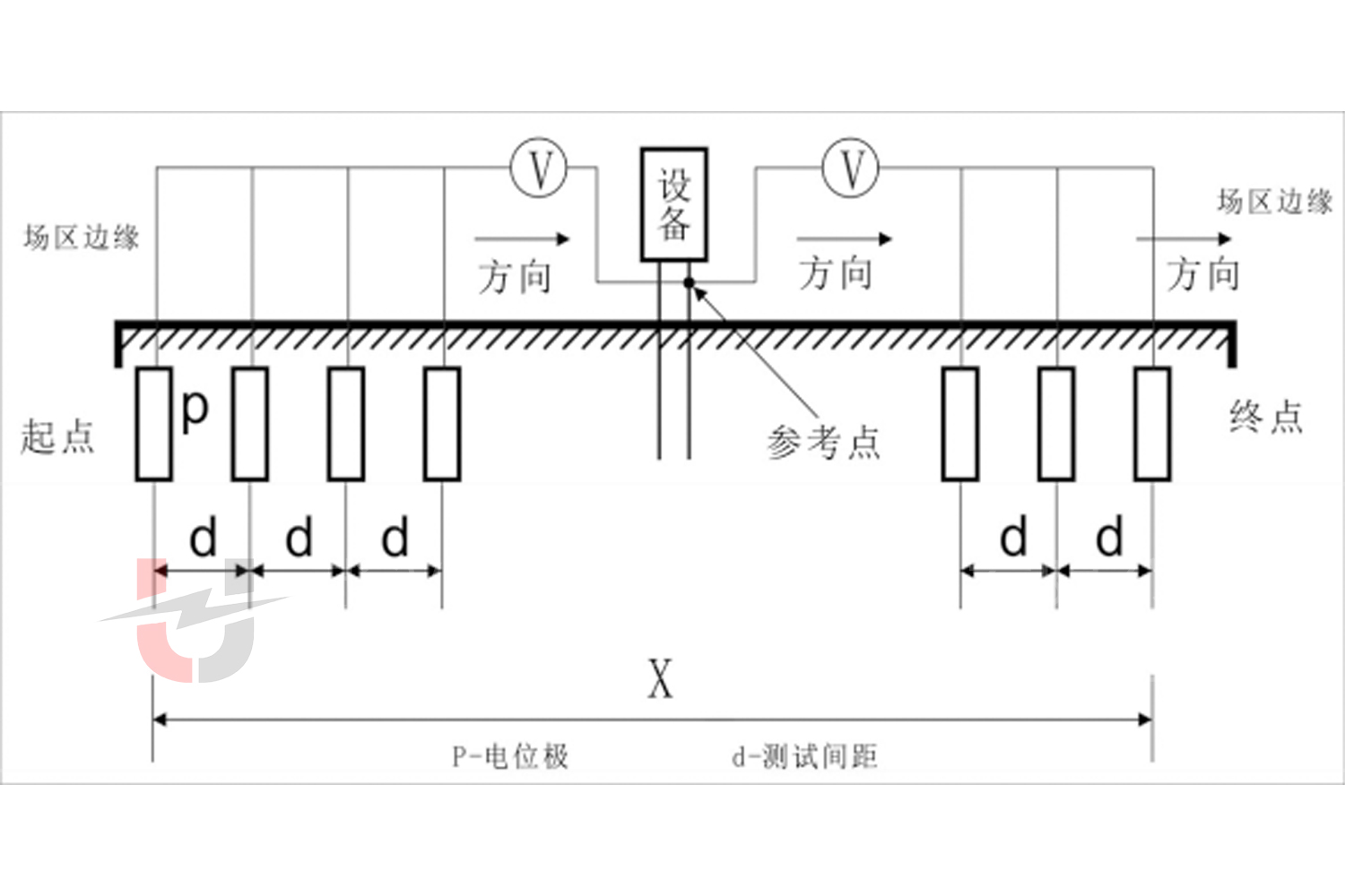 電壓極 P 與接地端的距離(DPE):≈0.618×DCE(基于 “零電位點” 理論,最小化測試誤差),若現場空間受限,可調整為