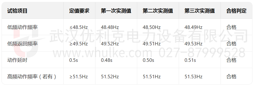重復驗證:重復試驗 2-3 次,確保每次實際動作頻率與定值偏差≤±0.05Hz(符合 DL/T 995-2016《繼電保護和電網安全自動裝置